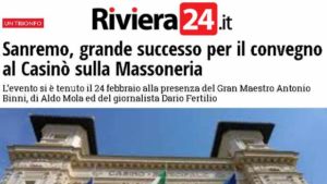 Sanremo. Si è svolto con successo il convegno tenutosi il 24 Febbraio al teatro del Casinò di Sanremo alla presenza del Gran Maestro della GldI Antonio Binni, di Aldo Mola ed del giornalista Dario Fertilio.